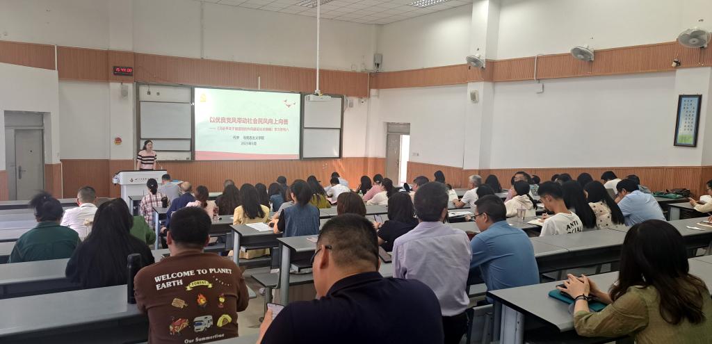 代宇以“以优良党风带动社会民风向上向善”为题,从以党风促民风的理论溯源、以党风促民风的历史经验、新时代加强党的作风建设的实践导向三个方面进行了系统讲解,她还结合案例,对如何改进和加强作风建设、如何准确理解和执行中央八项规定及其实施细则精神等重点内容进行了详细解读和深入浅出地讲解。
