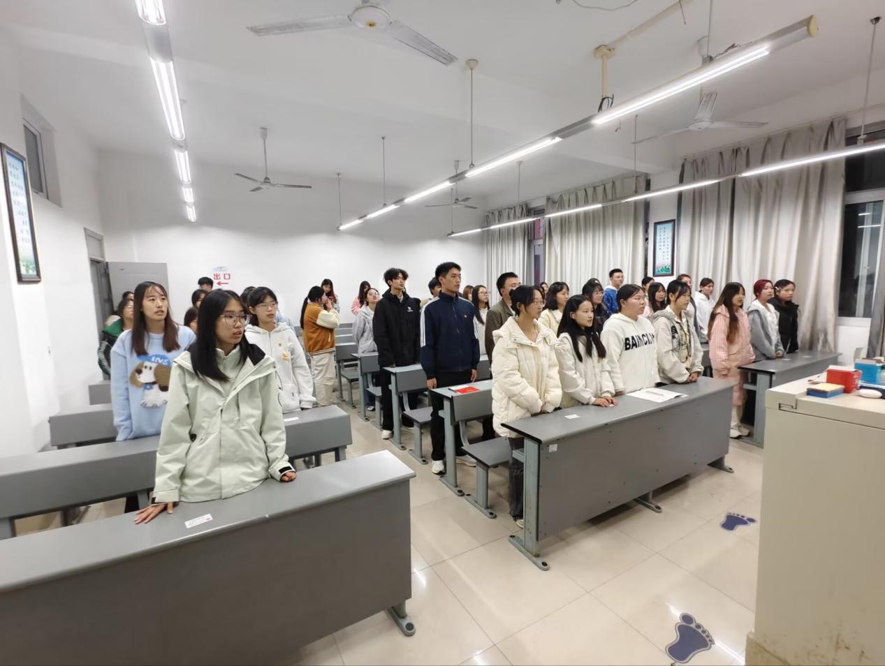 团课伊始,全场肃立,伴随着激昂雄壮的《光荣啊,中国共青团》旋律,全体团员齐声高唱团歌。嘹亮的歌声回荡在现场,不仅唤醒了大家作为共青团员的身份认同与光荣感,更以歌声为序,拉开了重温五四精神的序幕,让“爱国、进步、民主、科学”的精神内核在旋律中传递,为后续感悟历史、践行使命奠定了坚定昂扬的基调。