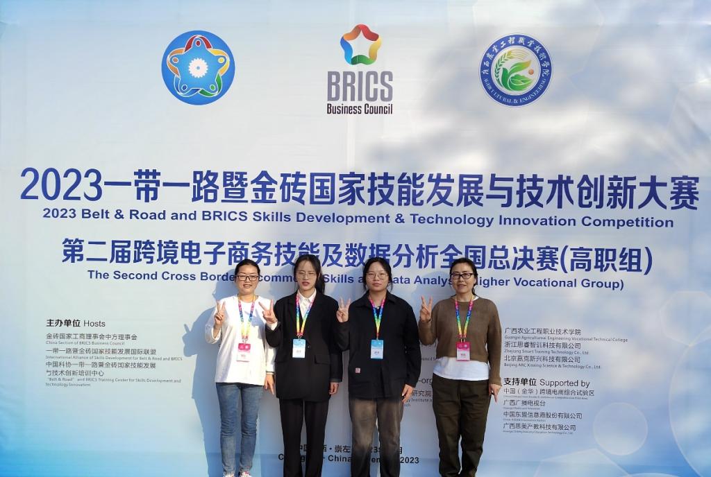 由金砖国家工商理事会中方理事会、一带一路暨金砖国家技能发展国际联盟、中国科协一带一路暨金砖国家技能发展与技术创新培训中心主办,多个单位联合承办的2023一带一路暨金砖国家技能发展与技术创新大赛——第二届跨境电子商务技能及数据分析全国总决赛(高职组)在11月25日-28日在广西农业工程职业技术公司举行,yl1111永利集团胡馨蓝、代欢欢两位同学组成的参赛团队在艾曦、钟舸两位老师指导下获得国家级三等奖。