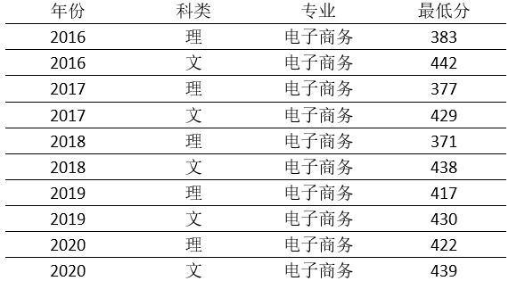 电子商务专业历年招生分数