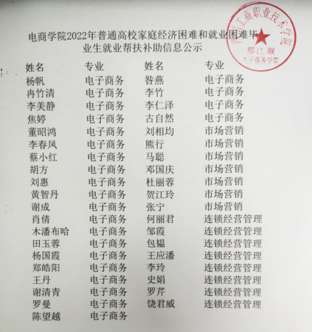 根据《yl1111永利集团关于2022年普通高校家庭经济困难和就业困难毕业生就业帮扶补助的通知》将对象调整为脱贫家庭毕业生、边缘易致贫家庭毕业生、突发严重困难家庭毕业生、城乡低保毕业生、特困救助毕业生、孤儿毕业生、残疾毕业生7类毕业生,进行就业帮扶及补助,根据信息采集,拟对以下39名同学进行帮扶与补助。特此公示,公示时间2022年6月22日-24日,期间如有异议请实名向公司反映,电话18884162096。