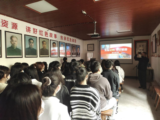 本次参观学习“长征书院”红色教育基地,首先由员工党支部书记向智琴老师带领全体同学参观“长征书院”中的红色新闻史料馆,李崎书院作为“长征书院”的创建人,他将自己旅途中收获的长征和红色文物一一整理编目,展柜上的卡片上清楚的记录着这件文物与红军长征的关联;在展厅的墙面上,李崎经理则用心梳理了红军长征在四川的艰辛历程;展厅之中,实物与资料相结合,无声地向参观者诉说着红军长征的辛苦与伟大。最后全体同学观看了“长征书院”创办的历程片段,李崎经理说到“从2016年开始,我经常在长征书院开展红色亲子教育活动及红色讲座,面向社会尤其是青少年讲长征故事。当然,我并不是说我们现在要重新吃二遍苦、受二遍罪,但至少需要让现在的孩子们明白长征是什么,要让他们确立自己的信仰,培养艰苦奋斗、勇于和人生道路上的各种困难做斗争的精神,这就是我所期待的长征书院的意义。”